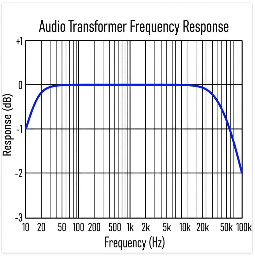 | Frequency Response | Range over which the transformer operates flat (e.g., 20Hz-20kHz ±1dB) | Ensures faithful bass and treble reproduction |
