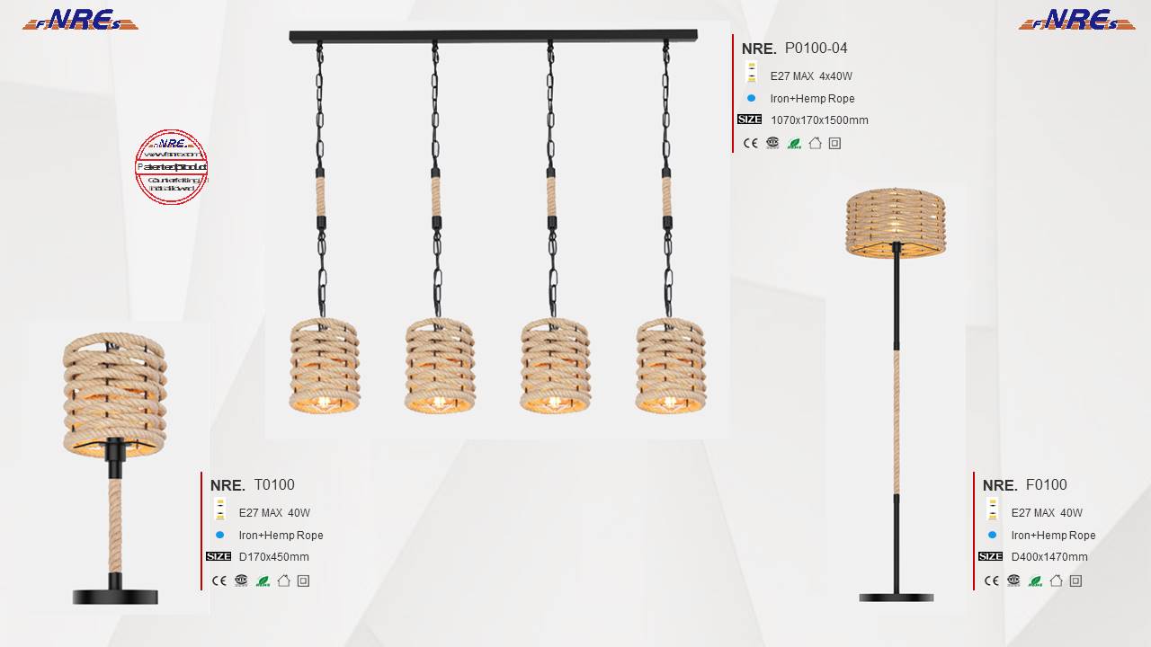 NRE.PO100-04 E27 MAX 4x40w iron+Hemp Rope size:1070x170x1500m