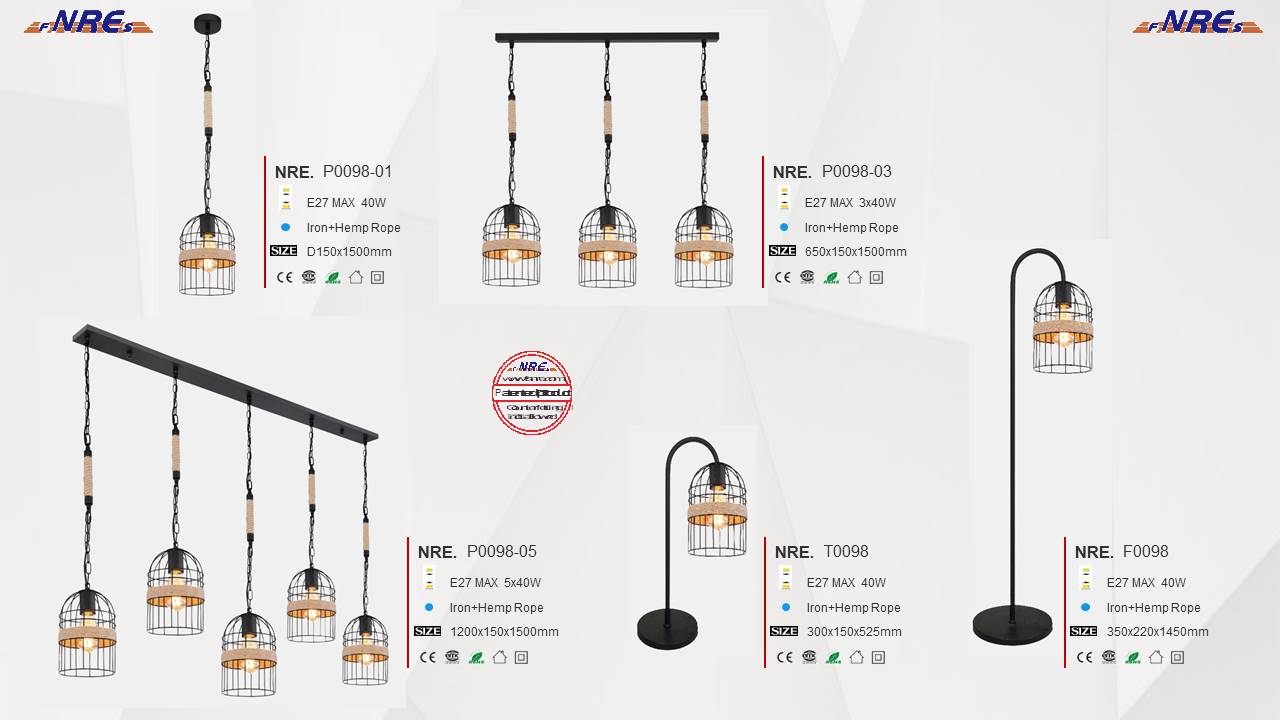 NRE.P0098-03 E27 MAX 4x40w iron+Hemp Rope size:650x150x1500mm